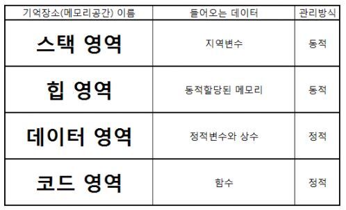 프로그램의 메모리 공간은 네 개의 영역으로 나눠서 관리된다 ( 위의 이미지 )
