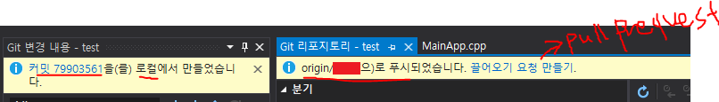 (메뉴 - Git > 설정 > 옵션 > Git 리포지토리 설정 > 원격 > 프로젝트이름.git 연결되어있는지 확인)