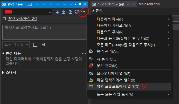 이거 하는 방법이 명령 프롬프트 (git 콘솔창 을 명령 프롬프트 로 대체 가능)